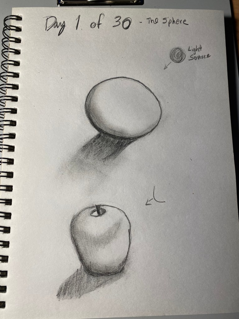 Continuing with my drawing lessons from the book You Can Draw in 30 Days, tonight’s lesson was The Sphere.