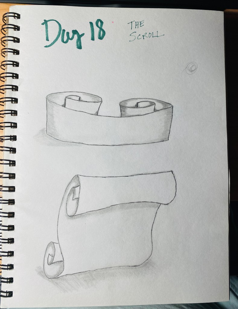 Knocked out two lessons tonight, so be sure to check Day 19 as well. Day/Lesson 18 was The Scroll. Taking Lesson 17 and turning flags into scrolls. It came out ok. Getting the hang of shading.