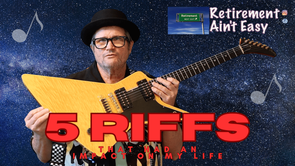 Today’s post highlights a video I posted on my YouTube channel – Retirement Ain’t Easy. In this video I highlight 5 guitar riffs, or licks, that had an impact on my initial guitar journey. I start with the first riff I ever tried to play. I include stories behind each riff and where I was in my guitar journey.